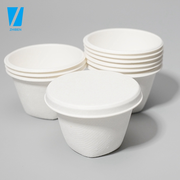 Our plant-based fiber compostable eco sauce cup with lids are made with advanced scientific formula, and manufactured by cutting edge automatic equipment and technique, made from plant fibers pulp like sugarcane bagasse and bamboo pulp, which are tree-free, carbon-neutral, environmentally friendly, compostable, and biodegradable, at the same time that our all sauce cup are PFOA PFOS and fluoride free